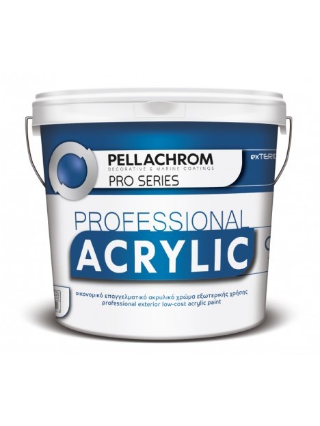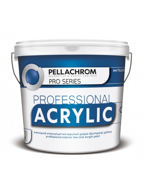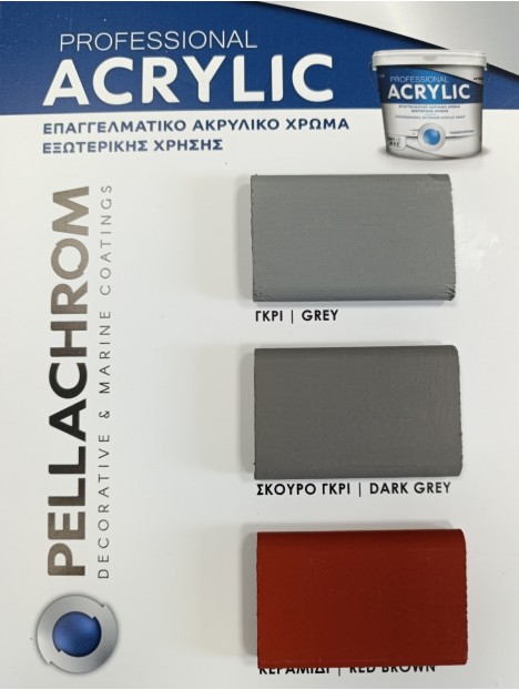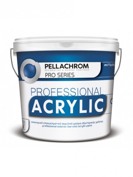 Proffesional Acrylic e екстериорна професионална акрилна боя в готови цветове- черен, червен, светло сиво, тъмно сиво. Подходяща за мазилка, бетон, тухли и др. Лесна за работа, бързосъхнеща, с висока покривност и матов завършек. Рентабилно и надеждно решение за професионалисти. Подходяща за боядисване и освежаване на помещения като складове, болници, училища, хотели, обществени сгради, покриви с нужда от често пребоядисване. Полага се с четка, валяк или пистолет.
